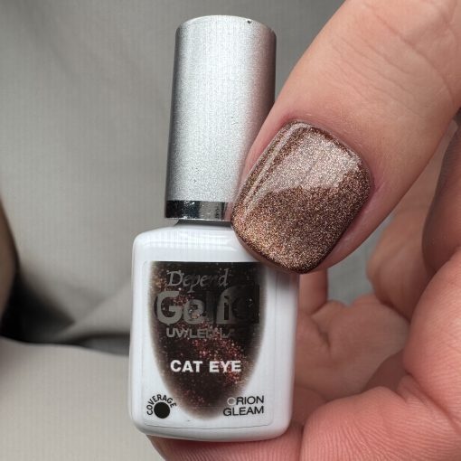 Syvyys ja vivahde vaihtelevat Cat Eye -tehosteen alla käytettävän Gel iQ -geelilakan värin mukaan.