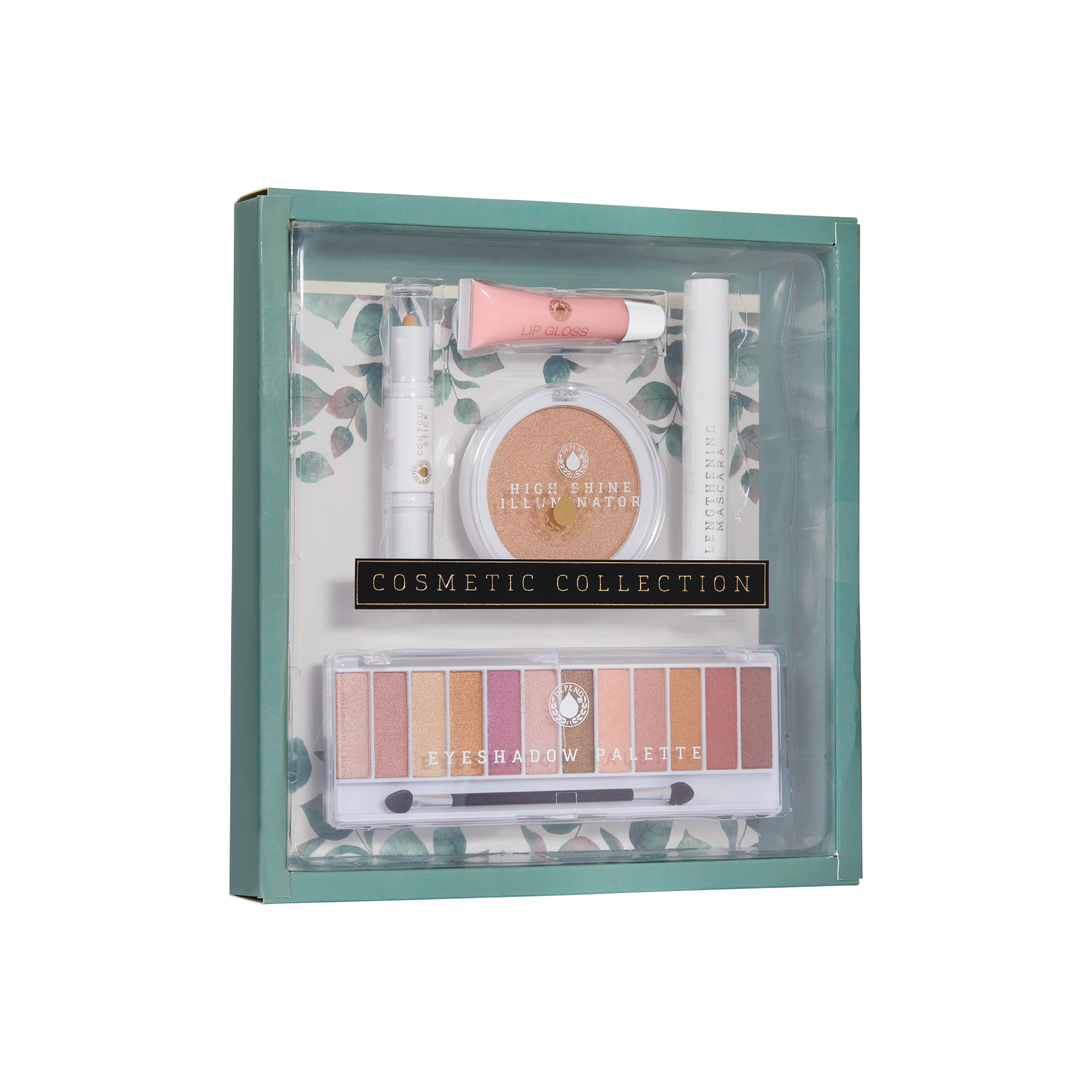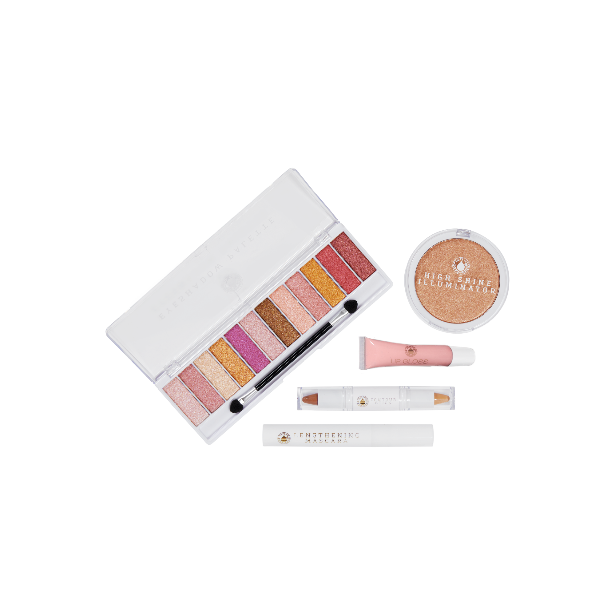 Meikkisetti, joka sisältää pidentävän ripsivärin, varjostuspuikon, luomiväripaletin, huulikiillon sekä highlighterin.